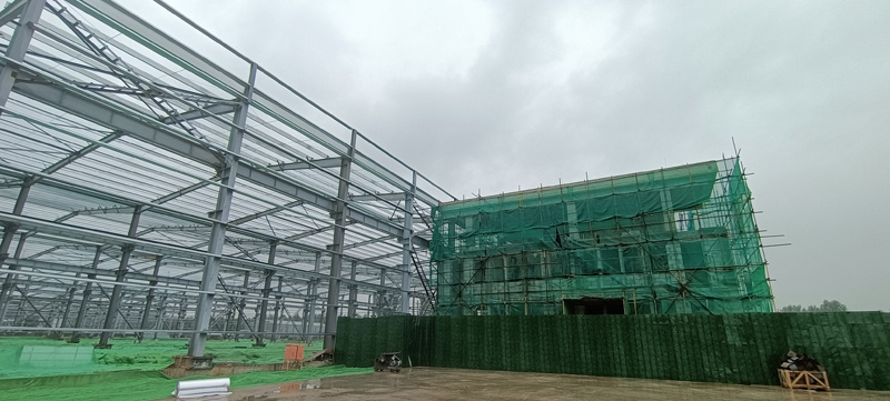 智能化生產(chǎn)廠房包括數(shù)字化展廳、備品備件庫等,建筑面積13800平米,目前所有的鋼結(jié)構(gòu)安裝已經(jīng)完成,正在進(jìn)行封裝工作。
