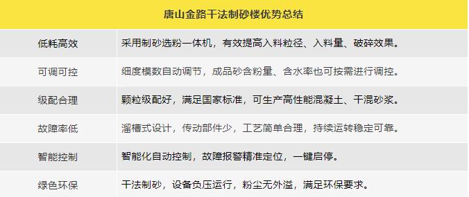 唐山金路作為一家集研發(fā)、生產(chǎn)、銷售、服務(wù)于一體的制砂機械設(shè)備企業(yè),一直致力于環(huán)保型破碎制砂設(shè)備的研發(fā)與生產(chǎn),現(xiàn)建有年產(chǎn)100萬噸的機制砂生產(chǎn)實踐基地。公司自主研發(fā)的V8干式整形制砂樓、V9干式制砂樓,具有綠色環(huán)保、能耗低產(chǎn)量高、智能控制等特點,產(chǎn)出的機制砂級配合理、粒形圓潤,是制砂生產(chǎn)企業(yè)的理想產(chǎn)品。